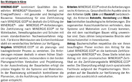 Kurzinfo über MINIERGIE-ECO